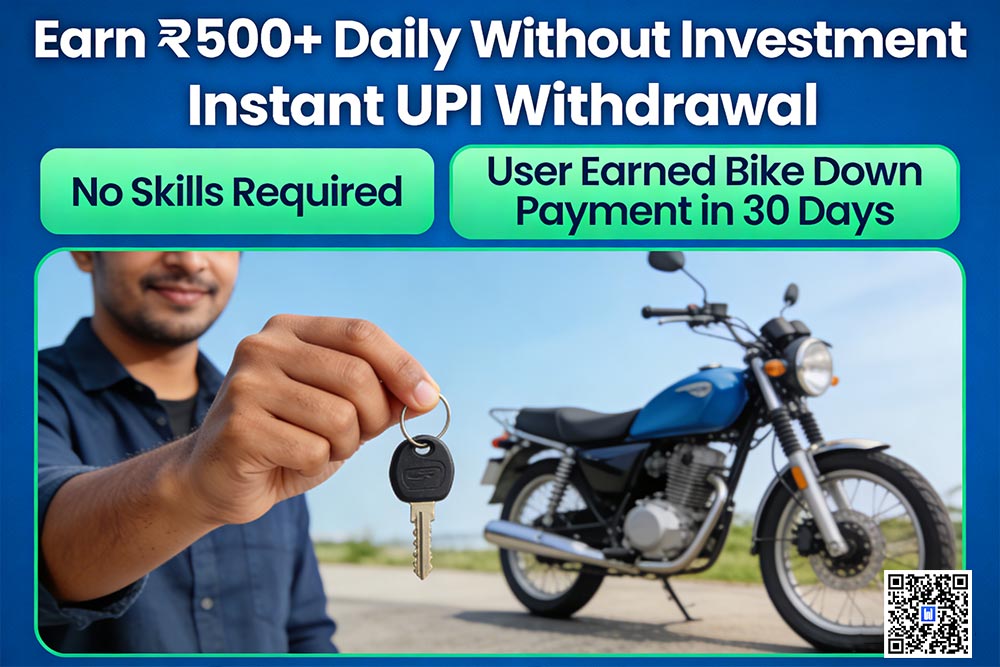 Arjun needed daily cash for college expenses, no fixed free time, zero investment. He found our recommended real daily earning app—India’s best daily earning app without investment that smashes the 500 daily earning app target daily: